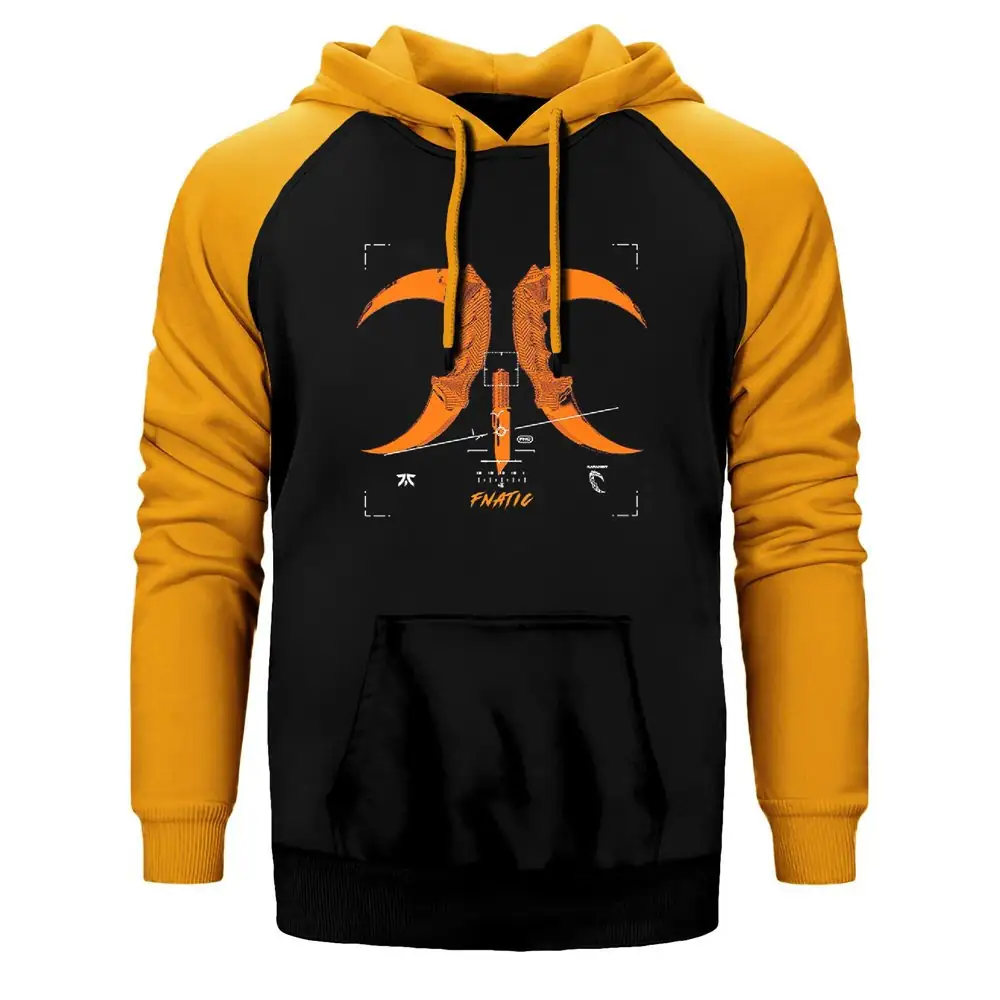 Fnatic Knifnatic Hoodie, Double Color Raglan Sleeve Yellow Sweatshirt