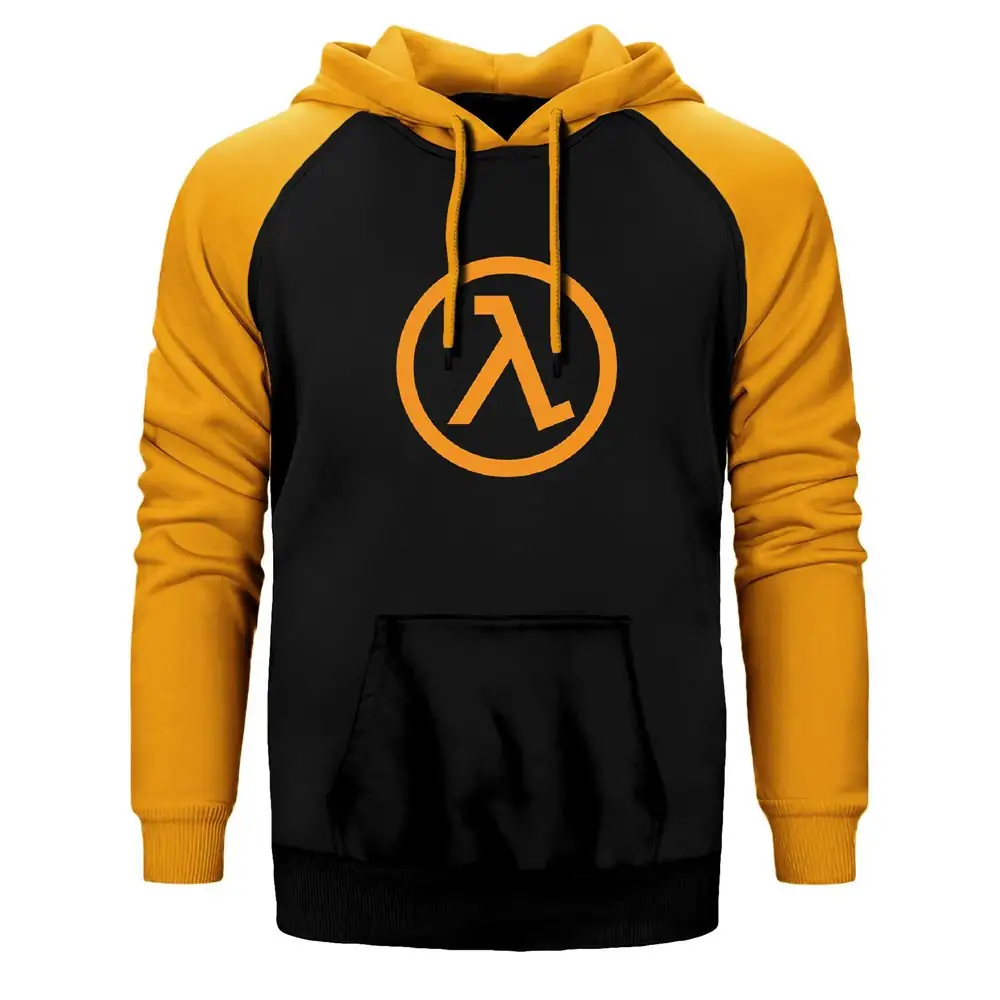 Half Life Logo Hoodie, Double Color Raglan Sleeve Yellow Sweatshirt