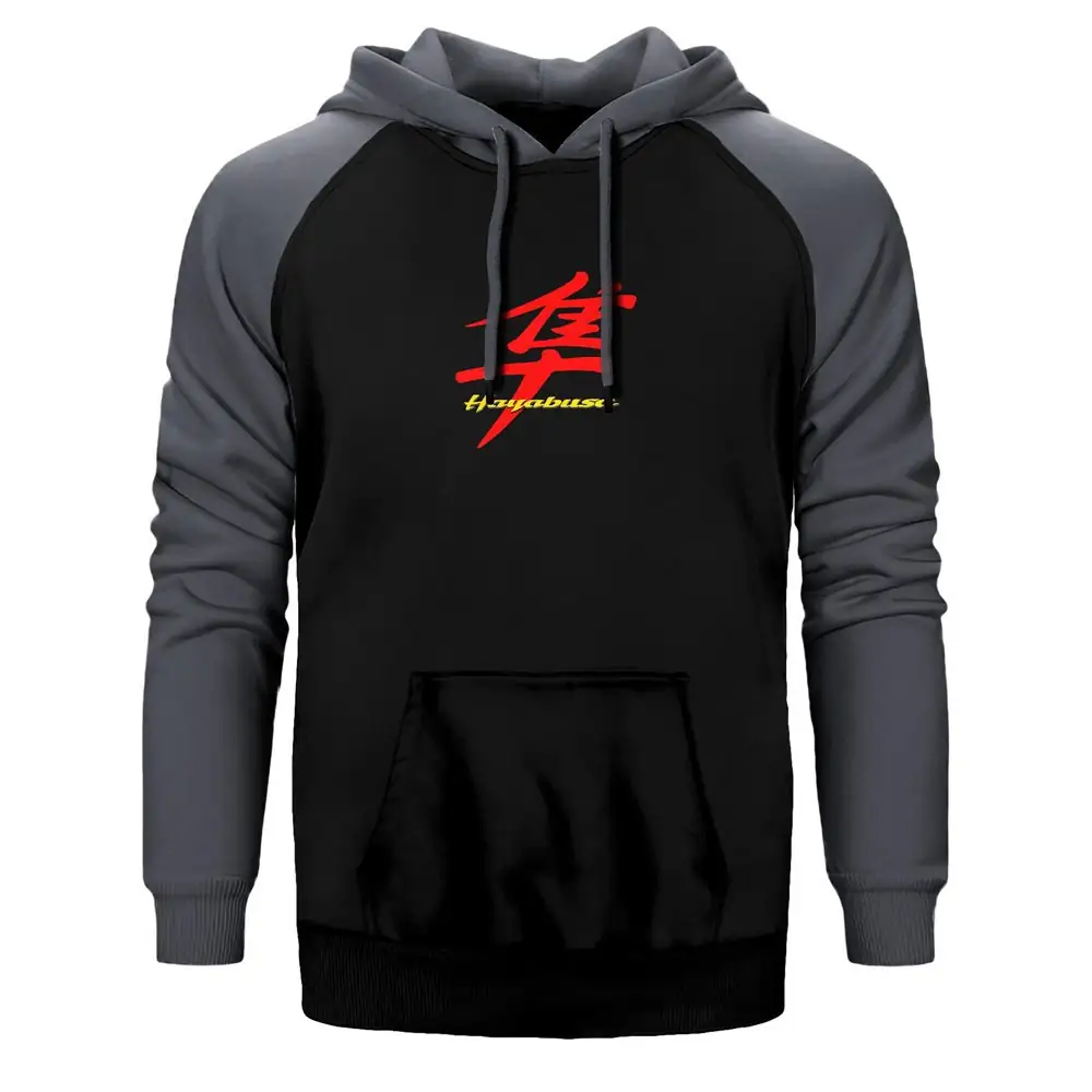 Hayabusa Logo Hoodie, Double Color Raglan Sleeve Gray Sweatshirt