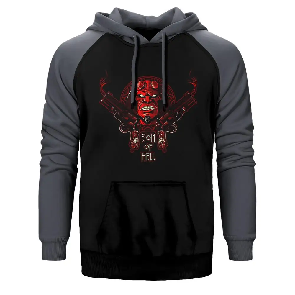 Hellboy Sons of Hell Hoodie, Double Color Raglan Sleeve Gray Sweatshirt