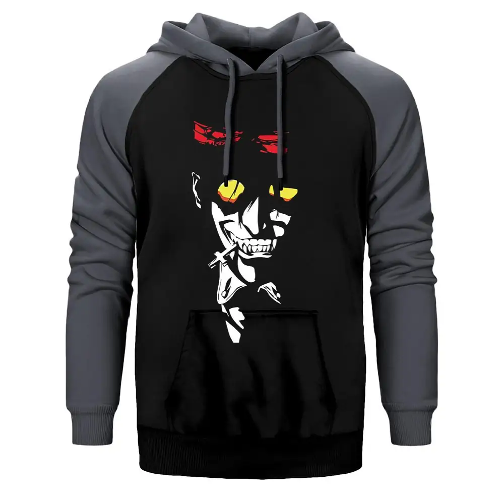 Hellsing Ultimate Cross Hoodie, Double Color Raglan Sleeve Gray Sweatshirt