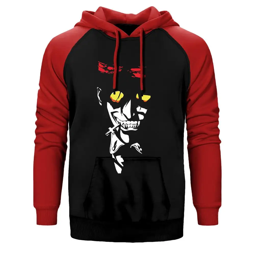 Hellsing Ultimate Cross Hoodie, Double Color Raglan Sleeve Red Sweatshirt