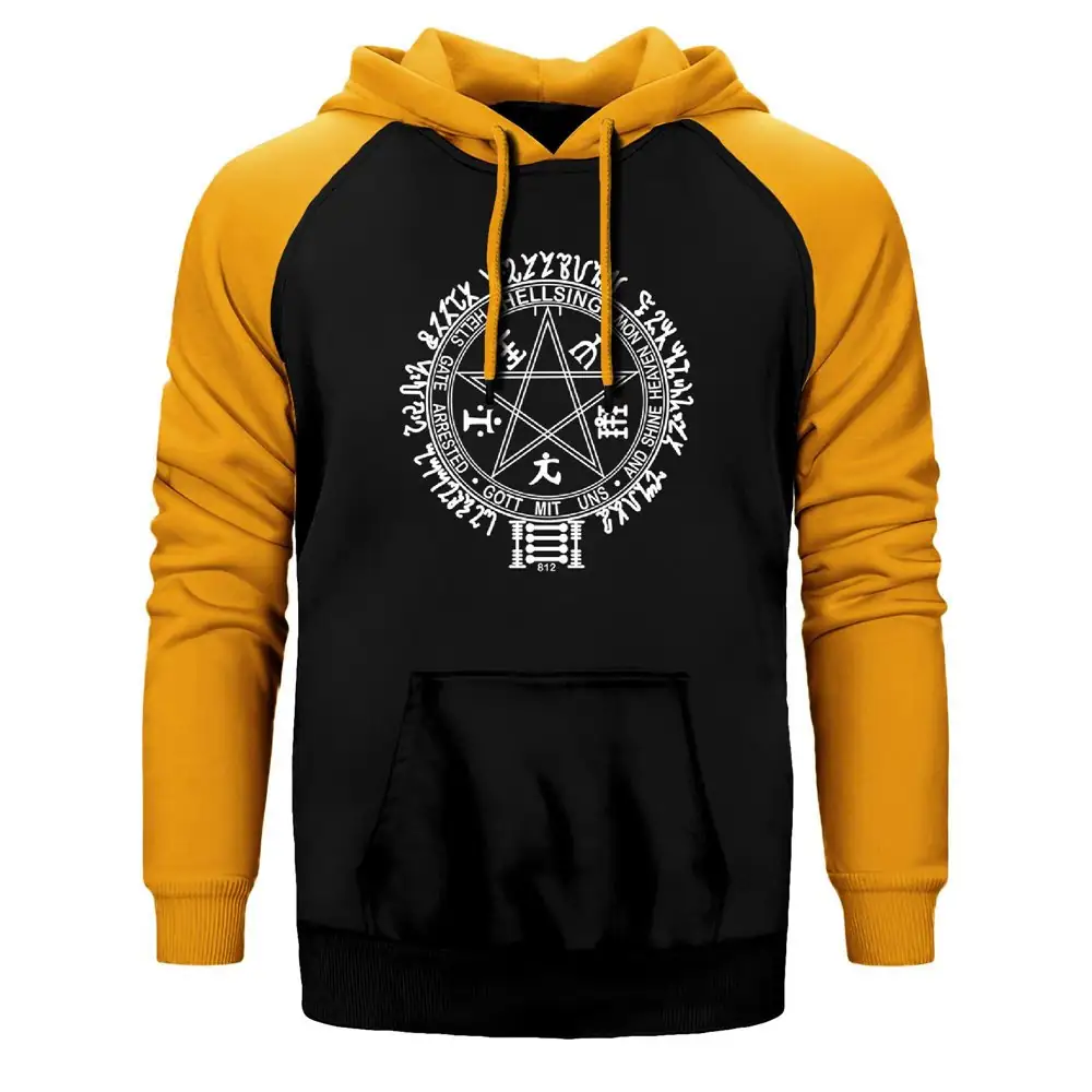 Hellsing Ultimate Symbol Hoodie, Double Color Raglan Sleeve Yellow Sweatshirt