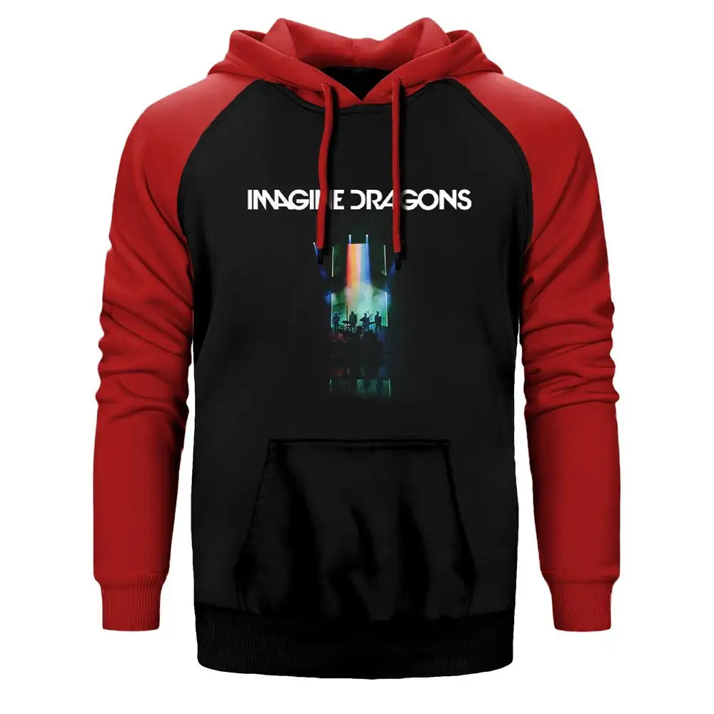 Imagine Dragons Concert Hoodie, Double Color Raglan Sleeve Red Sweatshirt