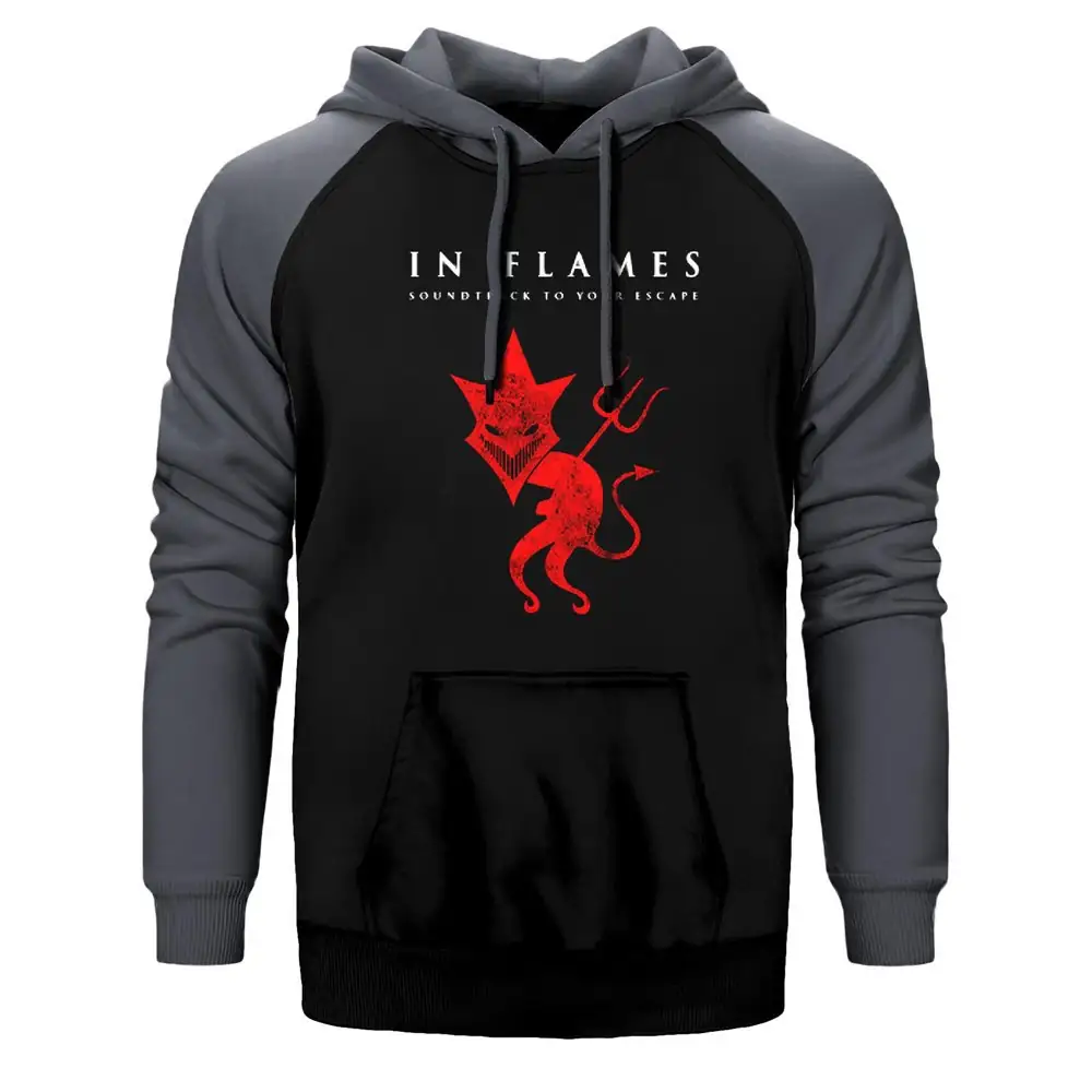 In Flames Hoodie, Double Color Raglan Sleeve Gray Sweatshirt