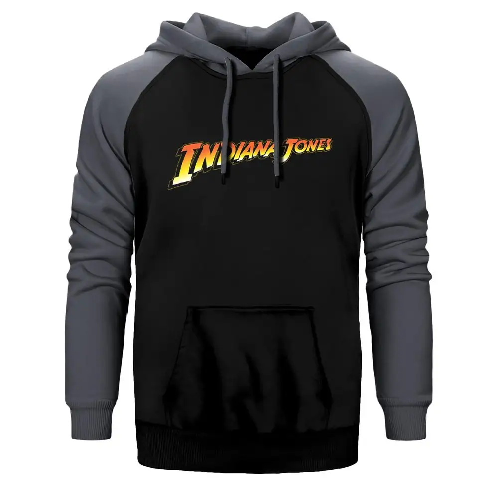 Indiana Jones Hoodie, Double Color Raglan Sleeve Gray Sweatshirt