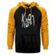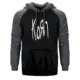 Korn Logo Hoodie, Double Color Raglan Sleeve Red Sweatshirt