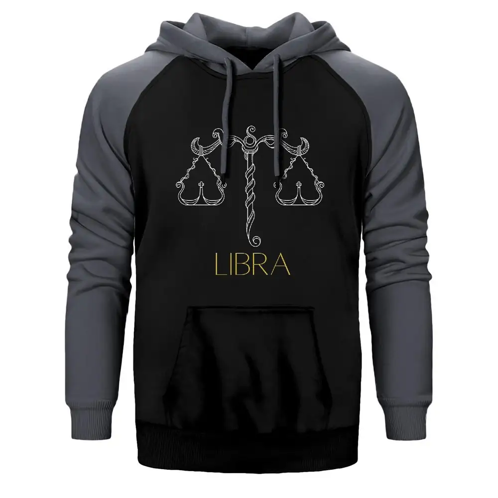 Libra Zodiac Retro Hoodie, Double Color Raglan Sleeve Gray Sweatshirt