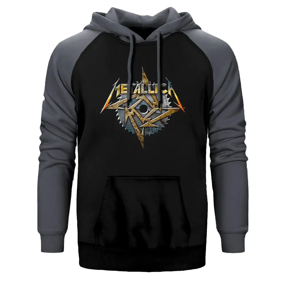 Metallica Blade Chain Hoodie, Double Color Raglan Sleeve Gray Sweatshirt