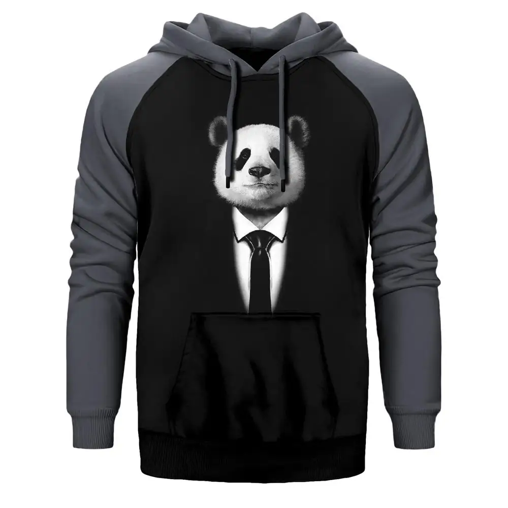 Mr. Panda Hoodie, Double Color Raglan Sleeve Gray Sweatshirt