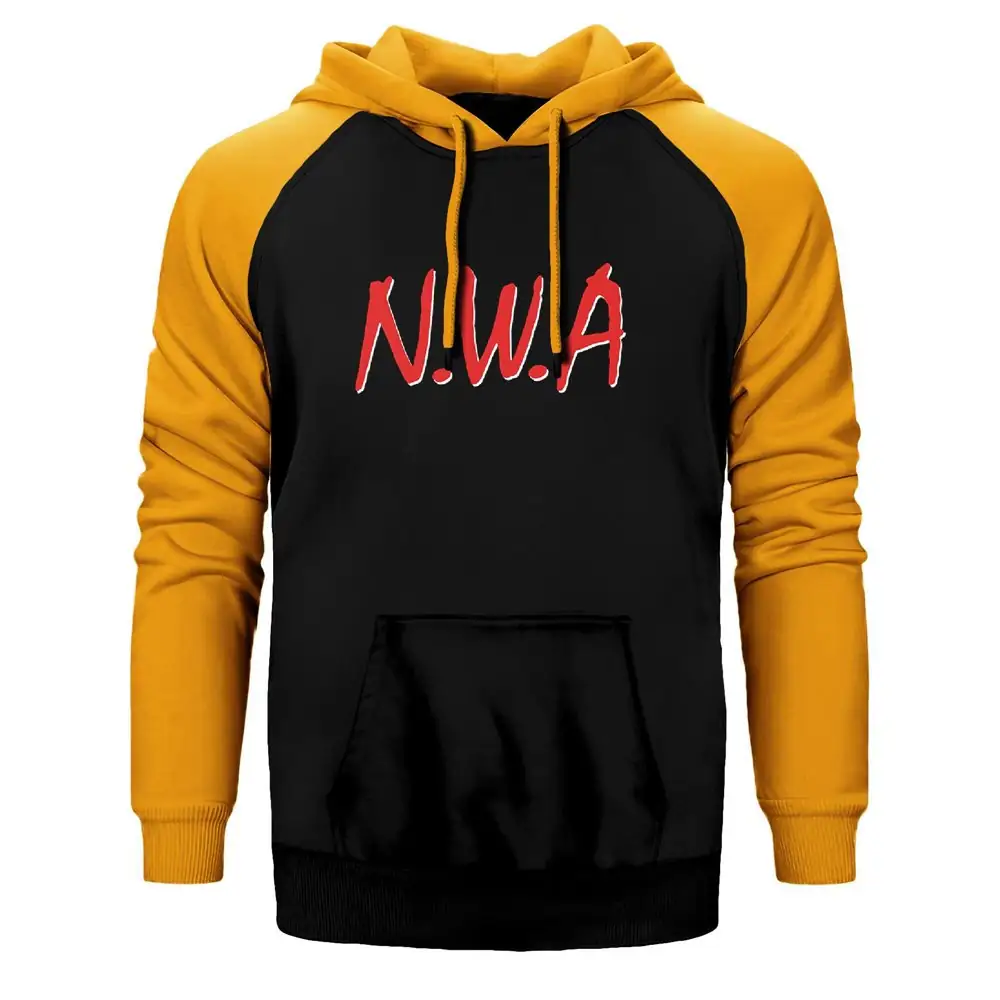 N.W.A. Logo Hoodie, Double Color Raglan Sleeve Yellow Sweatshirt