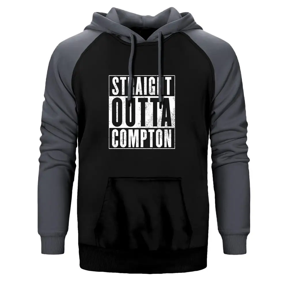 NWA Straight Outta Compton Hoodie, Double Color Raglan Sleeve Gray Sweatshirt