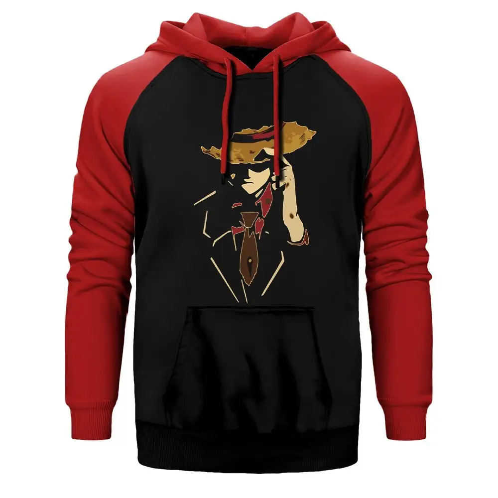 One Piece Monkey D Luffy Hoodie, Double Color Raglan Sleeve Red Sweatshirt