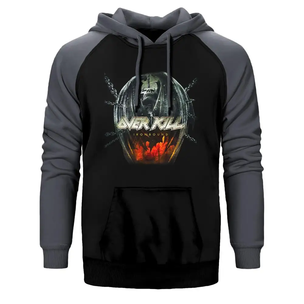 Overkill Ironbound Hoodie, Double Color Raglan Sleeve Gray Sweatshirt