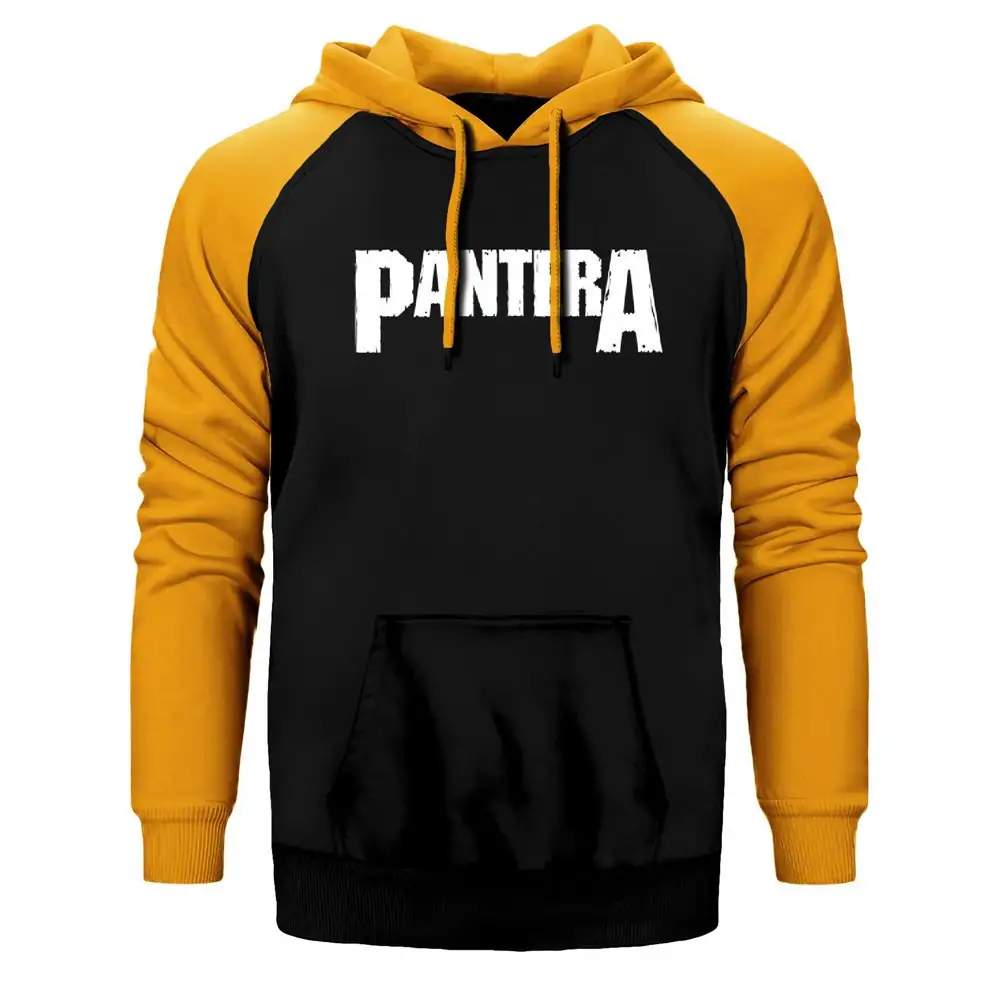 Pantera Logo Hoodie, Double Color Raglan Sleeve Yellow Sweatshirt