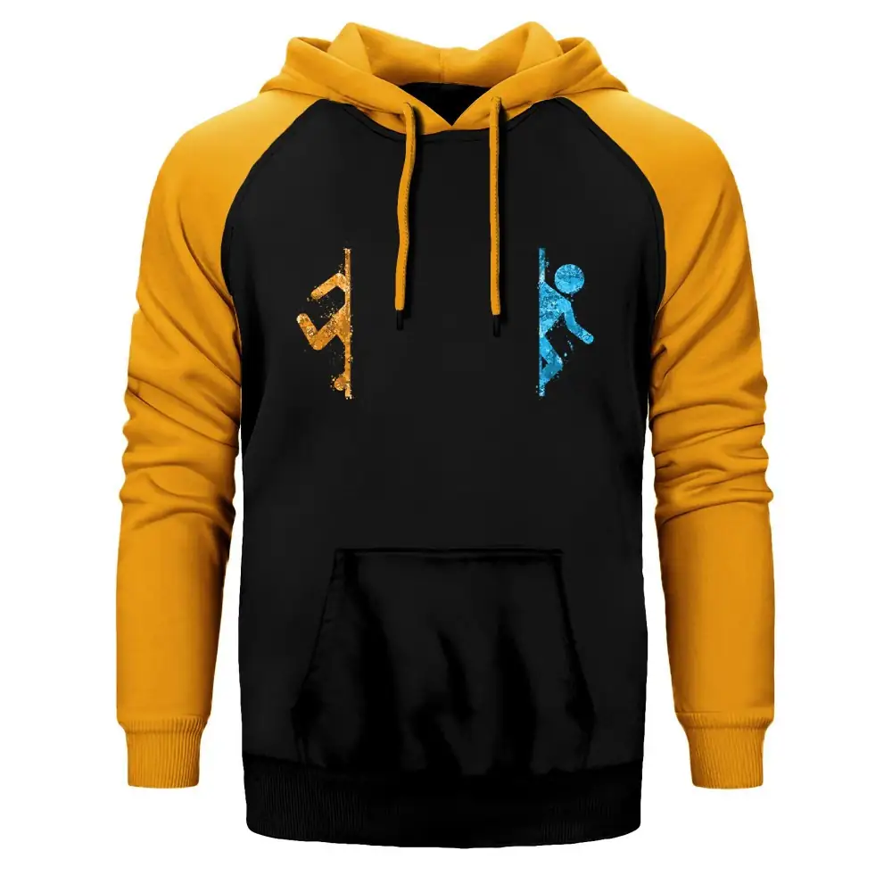 Portal 2 Co-Op 2 Hoodie, Double Color Raglan Sleeve Yellow Sweatshirt