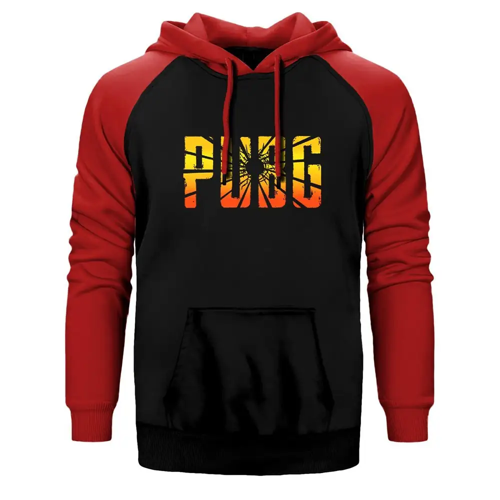 PUBG Logo Cracked Hoodie, Double Color Raglan Sleeve Red Sweatshirt