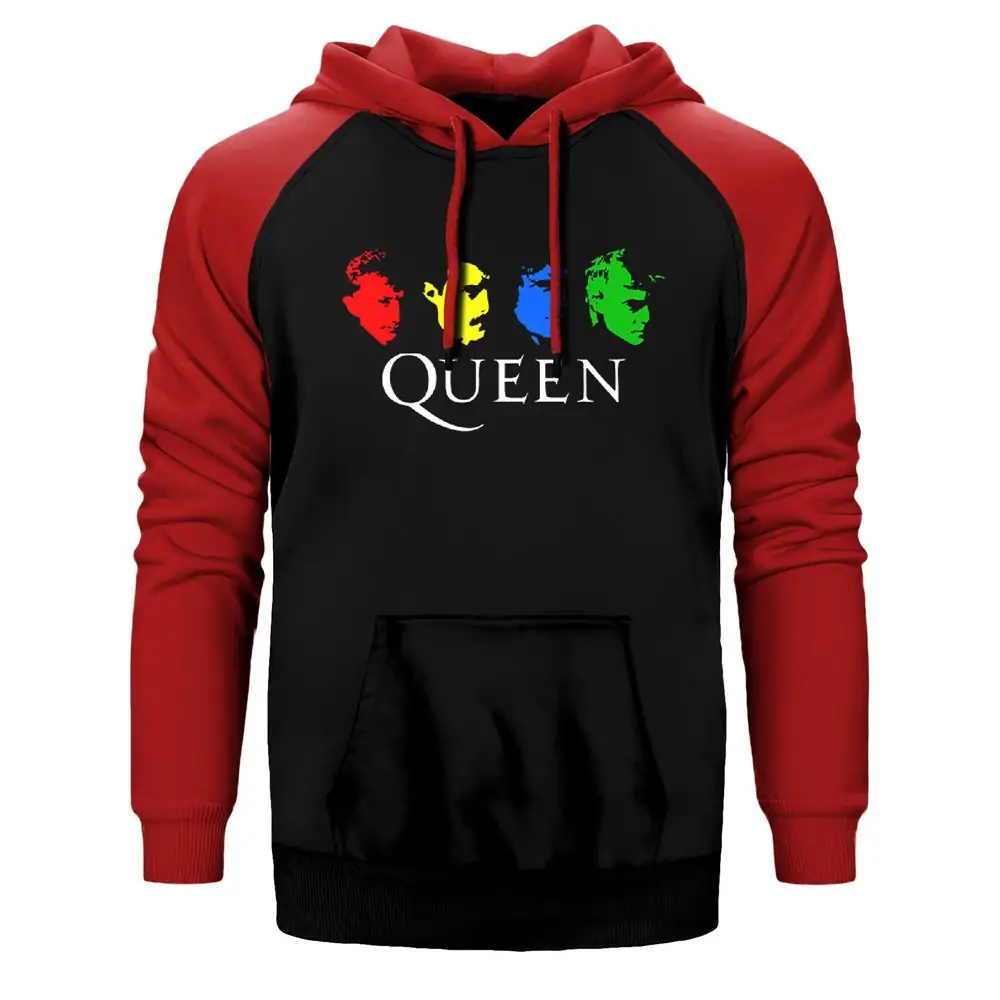 Queen Colored Hoodie, Double Color Raglan Sleeve Red Sweatshirt