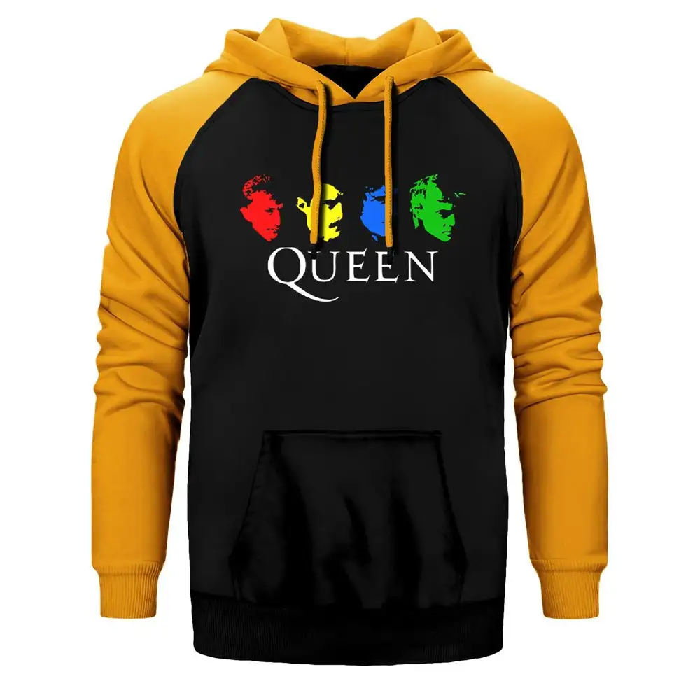 Queen Colored Hoodie, Double Color Raglan Sleeve Yellow Sweatshirt