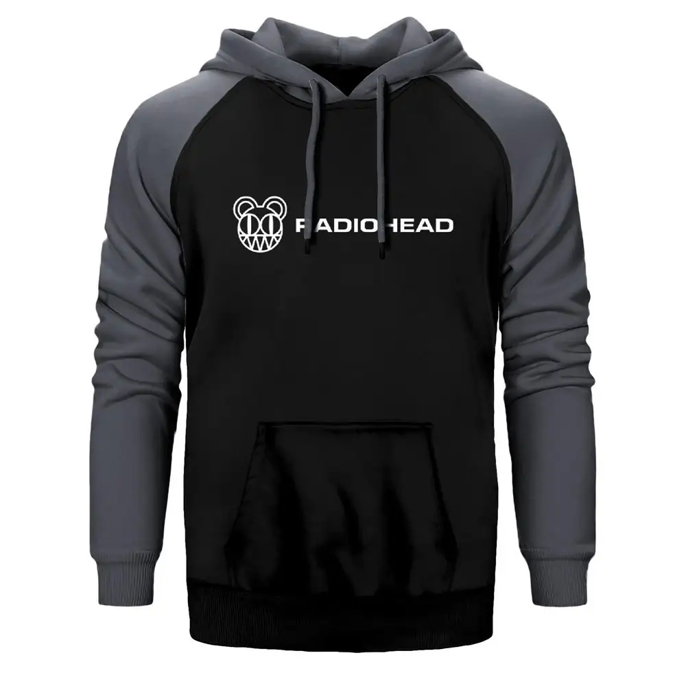 Radiohead Logo Hoodie, Double Color Raglan Sleeve Gray Sweatshirt