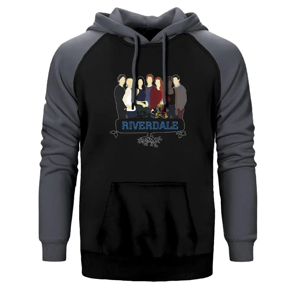 Riverdale Cartoon Hoodie, Double Color Raglan Sleeve Gray Sweatshirt