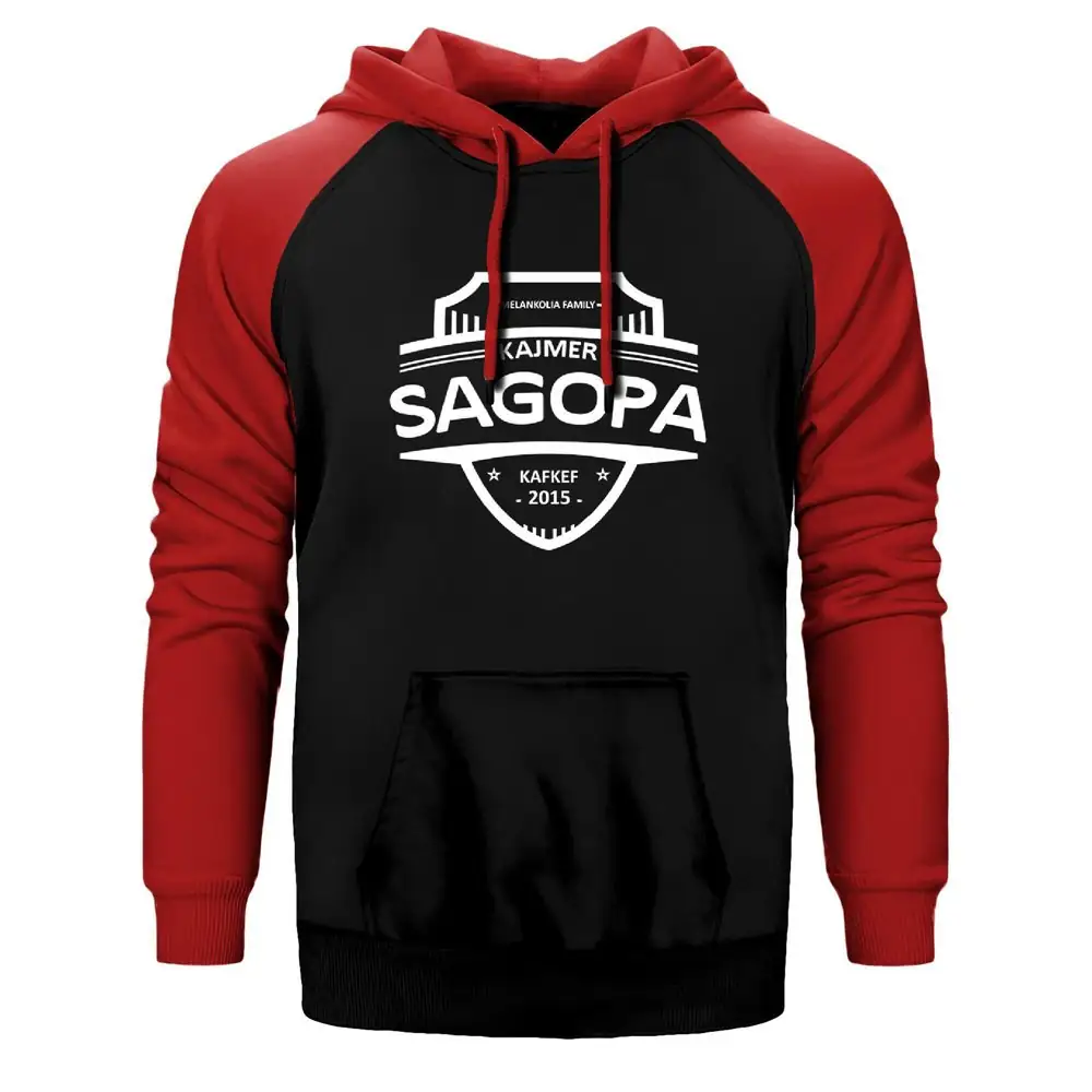 Sagopa Kajmer Melankolia Family Hoodie, Double Color Raglan Sleeve Red Sweatshirt