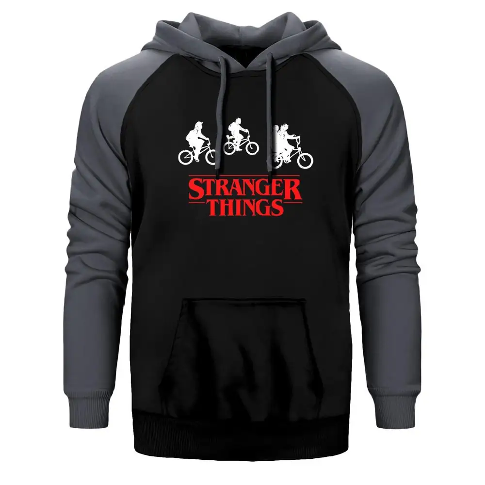 Stranger Things Bicycle Hoodie, Double Color Raglan Sleeve Gray Sweatshirt