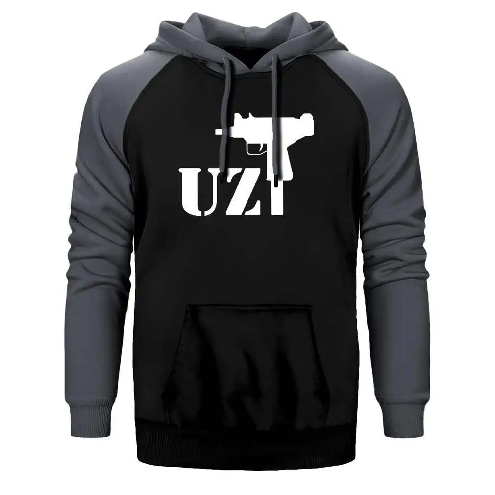 Uzi Underground Hoodie, Double Color Raglan Sleeve Gray Sweatshirt