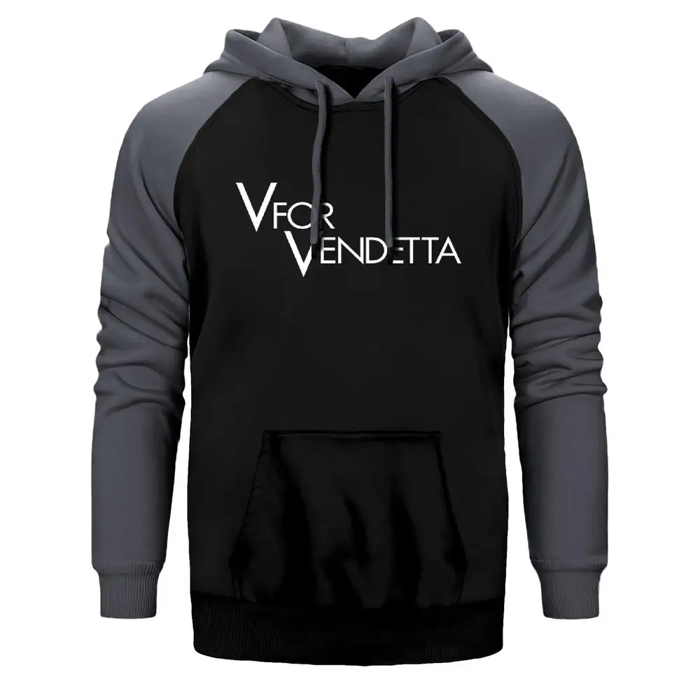 V for Vendetta Hoodie, Double Color Raglan Sleeve Gray Sweatshirt